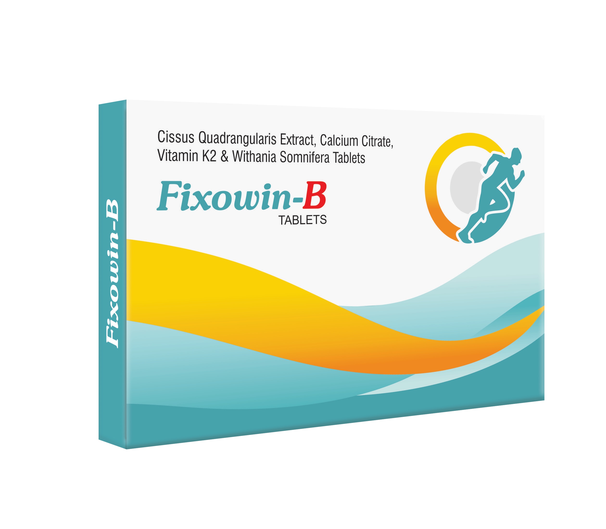 FIXOWIN-B Tablets : Cissus Quadrangularis Extract Calcium Citrate Vitamin K2 & Withania Somnifera Tablets Usual Generic Name : Cissus Quadrangularis Extract, Calcium Citrate, Vitamin K2 & Withania Somnifera Tablets Brand Name : FIXOWIN Tablets Composition : Each Film coated Tablet contains Approx. : Cissus Quadrangularis Extract 500 mg Calcium Citrate 500 mg Vitamin K2 75 mcg Withania Somnifera 150 mg Excipients Q. S. Therapeutic Uses : Bone Fracture Weak Bones Delayed Union of Fractures Osteomyetitis Post Menopausal Osteoporosis Senile Osteoporosis Patients with low BMD Unique Features : This is an unique Combination of Ayurvedic + Nutraceutical Ingredients and it works for faster & Safer recovery in Bone Fracture. Packing Unit : Outer Box containing 10 Monopacks of 10 Tablets each.