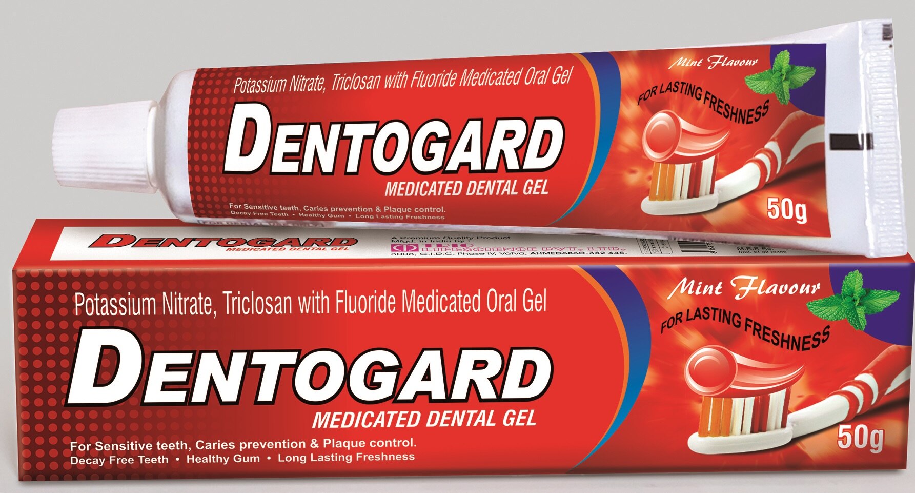DENTOGARD Dental Gel : Owing to our rich industry experience, we have been able to offer our valuable clients supreme quality Medicated Tooth Paste for Sensitive Teeth-dentogard. Features: Effective against Teething Pain Safe to use Perfect packaging Pharmacopoeal Name : Potassium Nitrate, Triclosan with Fluoride Medicated Oral Gel Brand Name : Dentogard Dental gel Composition : Potassium Nitrate B.P. 5.00% w/w Sodium Monofluorophosphate U.S.P.0.70% w/w (Available Fluoride Content 917 ppm) Triclosan U.S.P. 0.30% w/w In a Pleasently Flavoured Base Colour : Ponceau 4R Therapeutic Uses : Inflammed Gums, Dentinal Sensitivity, Denuded Toothache, Sensitive tooth reacting to Hot & Cold, Gingivitis, Bleeding Gums, Spongy Gum, Pyorrhoea, Teething Pain. Unique Features : 50Gm Reddish Gel in a Beautiful Pack Packing Unit : 50Gm Lammi Tube withan attractive Pack. Case Pack : 10 Tubes are shrink packed.
